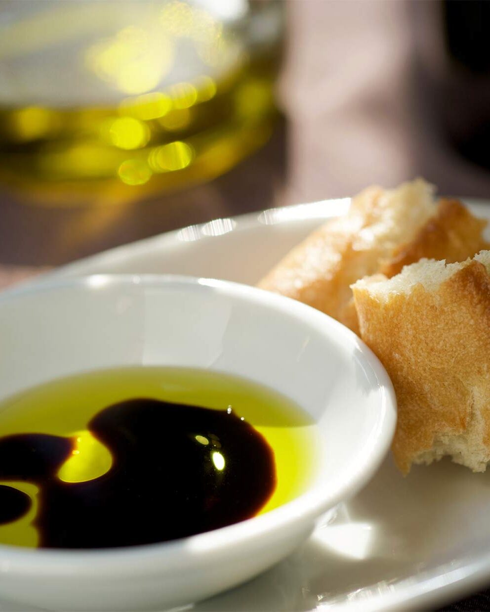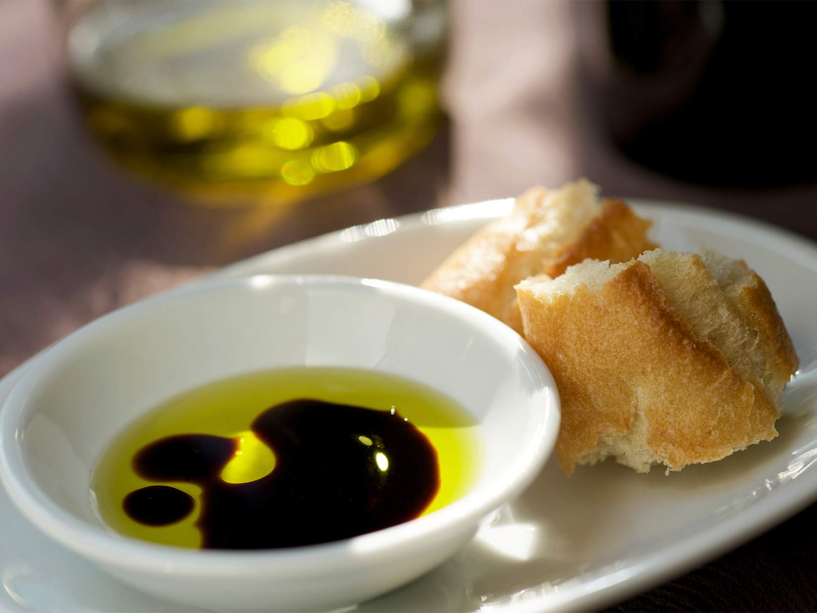 - Hell olivenolje og balsamicoeddik i en liten bolle. Krydre med salt og nykvernet pepper.